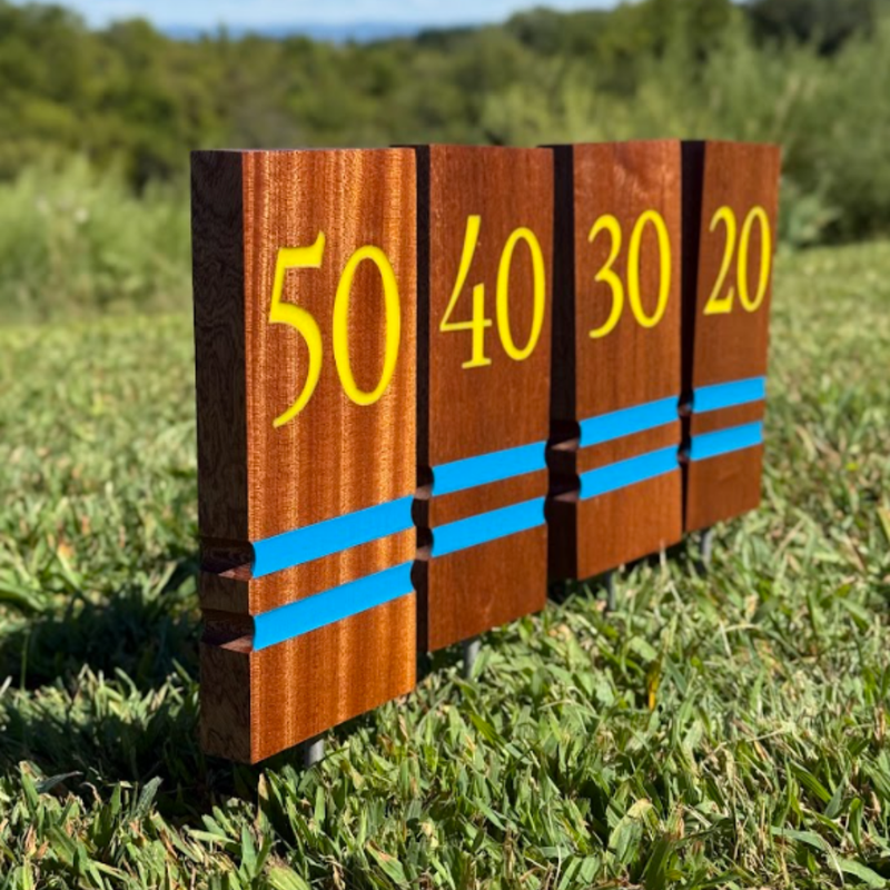 Yes! You can choose the type of wood, color scheme, logo, and which markers specifically you want at your course or practice facility. In terms of signs, full customization is possible. If you can envision it, we can make it!